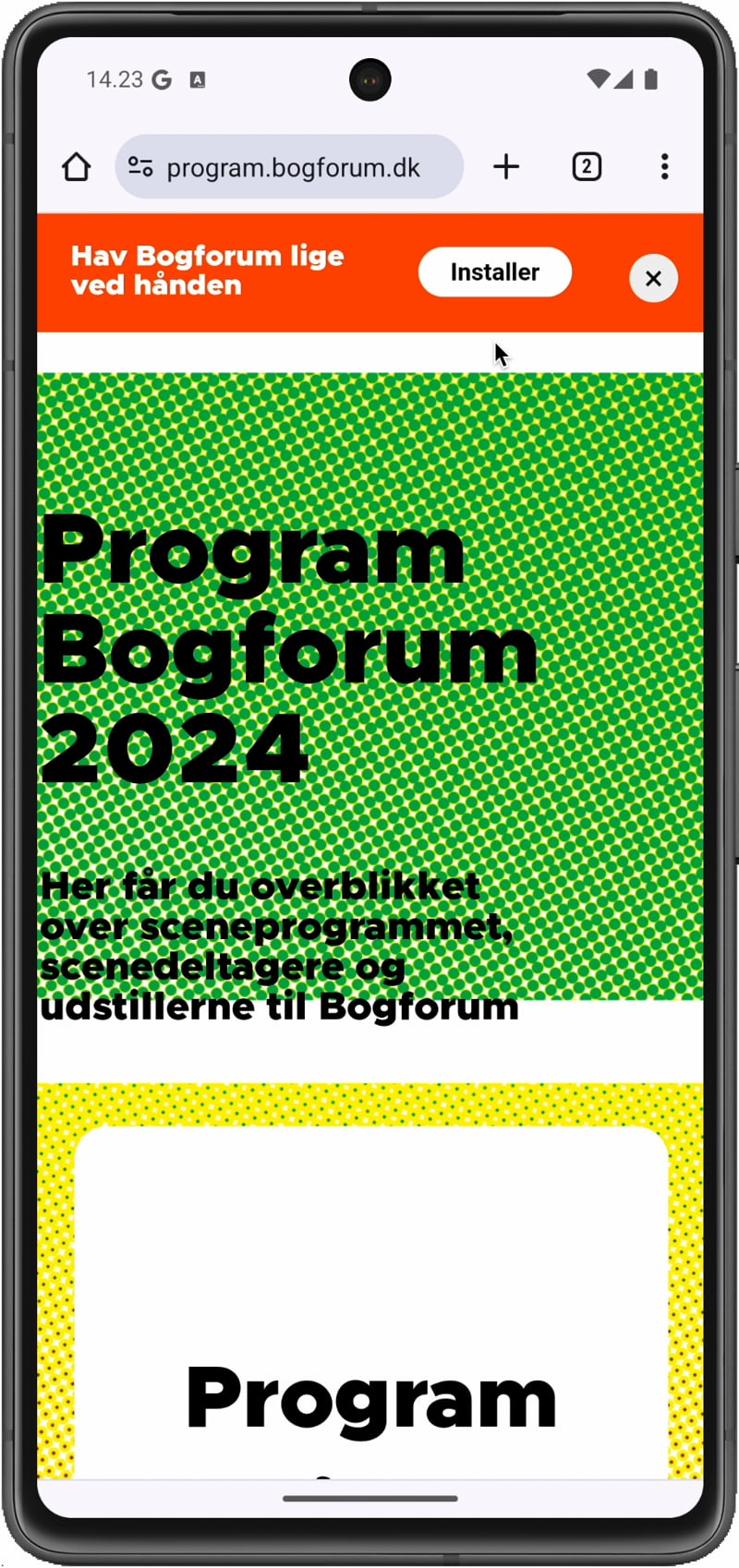 Gå ind på hjemmesiden program.bogforum.dk på din telefon.